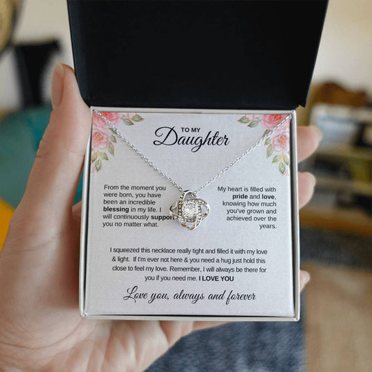 “To My Daughter” Necklace Gift | Love Knot Pendant with Heartfelt Message Card