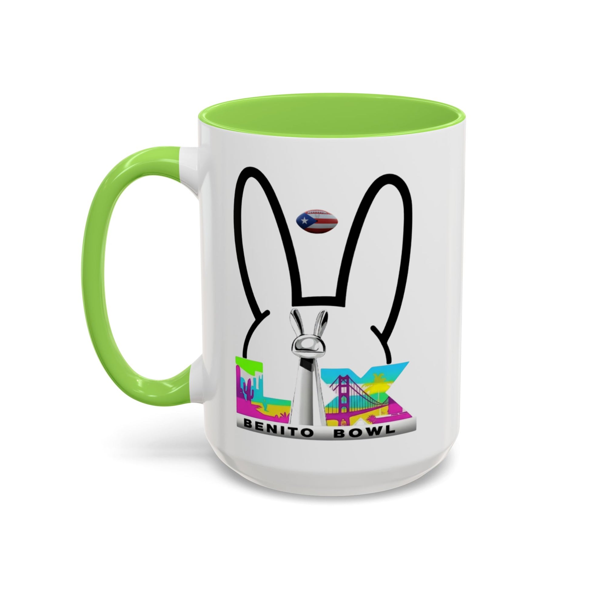 Brighten your caffeine routine with a playful, modern statement piece. This glossy color-accent mug features bold bunny ears paired with a vibrant skyline graphic—perfect for coffee, tea, or cozy cocoa at home or the office. The premium ORCA® coating keeps prints crisp and color-true, while the black handle and interior add a sleek, contemporary finish. Available in 11oz and 15oz sizes, it’s a fun gift for birthdays, holidays, housewarmings, and anyone who loves expressive, art-forward drinkware.
