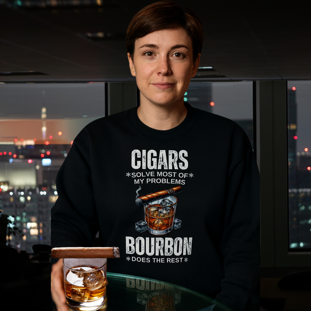 Cigars Solve Most of My Problems, Bourbon Does the Rest | Funny Crewneck Sweatshirt | Whiskey Lover Gift